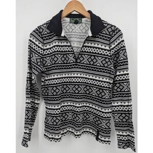 lauren ralph lauren sweater womens large fair isle cotton quarter zip nordic ski preppy y2k cozy winter vintage knit black white