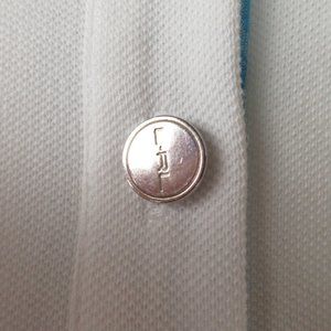 Branded buttons. Contrast trim. Classic sport polo. Embroidered emblem.