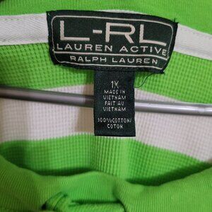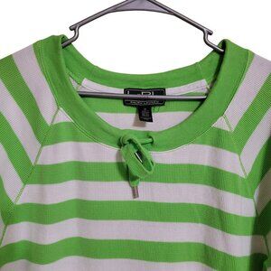 Lauren Ralph Lauren Active Green & White Striped Cotton Top 1X Preppy Casual