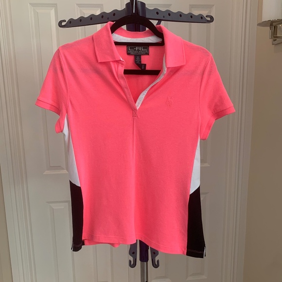 Lauren Ralph Lauren Active Pink/White/Black Polo Top sz M