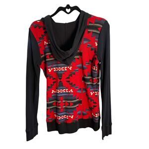 Lauren Ralph Lauren Active Southwestern Print Knit Hoodie Red Blue Medium AS IS