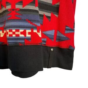 • Features: Pullover styling, Waffle knit, Hooded, Long sleeve, Red blue and navy southwestern pattern