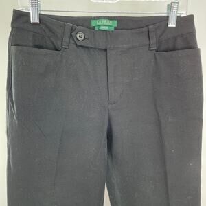 Lauren Ralph Lauren Adelle Black Cotton Stretch Button-Tab Waist Pants Size 6