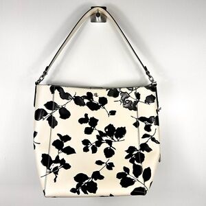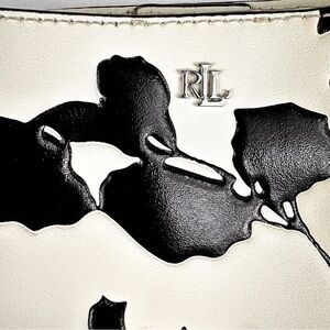 Lauren Ralph Lauren Adley Leather Shoulder Bag Floral White with Black Embossed