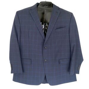 Lauren Ralph Lauren All Wool Navy Windowpane Suit Pants and Jackt 44R