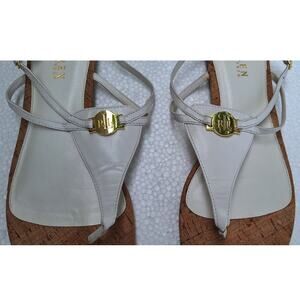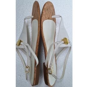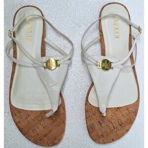 Lauren Ralph Lauren Anita Cork and Leather Flat Sandals White Size 10 Gold Logo