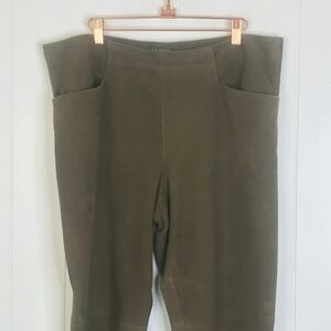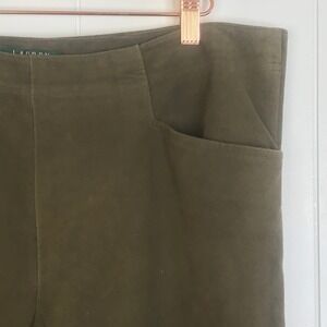 Lauren Ralph Lauren Army Green 100% Suede Fully Lined Boot Cut Pants SZ 14