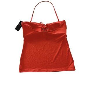 Lauren Ralph Lauren Beach Club Solid Logo Grommet Tubini Top Size 10 $110 NWTImportedRemovable soft push-up cupsTummy controlPull-on styling; removable strapsStraight neckline with lace-up frontLinedColor is Sunset
