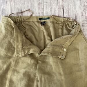 Lauren Ralph Lauren Beige 100% Linen Wide Leg Pants Women's Size 14P