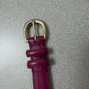 This listing is for a Lauren Ralph Lauren LRL Skinny Italian Leather Belt. Berry. Silvertone brass buckle. Approx 3/4in wide.