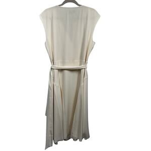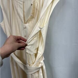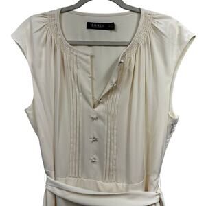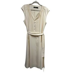 Lauren Ralph Lauren Belted Crepe Cap Sleeve Button Up Cream Midi Dress Sz 14