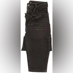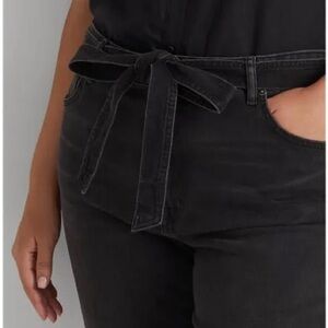 Lauren Ralph Lauren Belted High-Rise Tapered Jeans , Black Wash Size 14W NWT