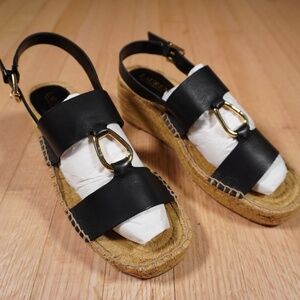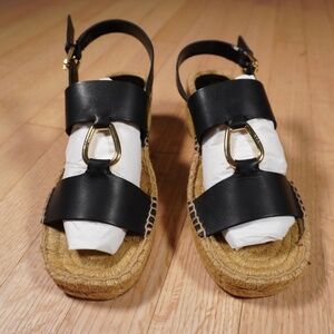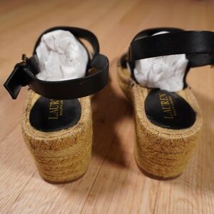 Lauren Ralph Lauren Bena Espadrille Wedge Sandal Black Size 8.5B Brand New