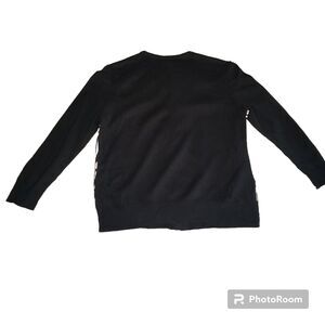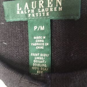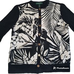 Lauren Ralph Lauren Black Cream Floral Silk Cashmere Cardigan Sweater Petite Med