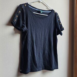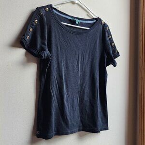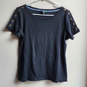 Lauren Ralph Lauren Black Decorative Scoop Neck Short Sleeve Jersey Size XL. Decorative buttons down each shoulder and sleeve. 100% cotton. Excellent condition.