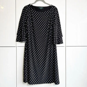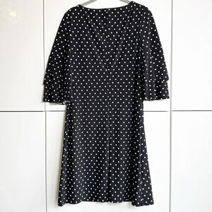 Lauren Ralph Lauren Black Dress Polka Dots Size 6 Liquid Knit Flutter Sleeves