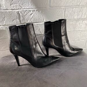 Lauren Ralph Lauren Black Genuine Leather Pointed Toe Ankle Booties