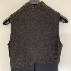 Lauren Ralph Lauren Black Gold Metallic Embellished Glittery Ruffle Dress Sz 12