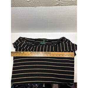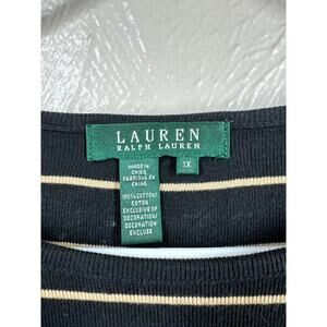Lauren Ralph Lauren Black Gold Striped Button Shoulder Cotton Tee Plus Size 1X