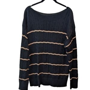 Lauren Ralph Lauren Black & Gold Striped Long Sleeved Boatneck Sweater (L)