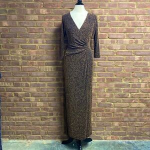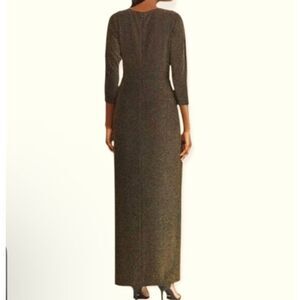 Lauren Ralph Lauren Black & Gold Metallic Ruched Evening Gown Dress Size 8 NEW
