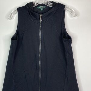 Lauren Ralph Lauren Black Hooded Zip Vest Size Medium
