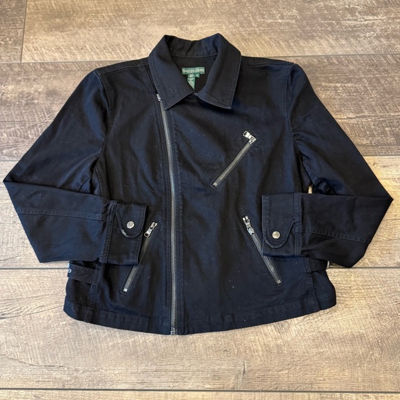 Lauren Ralph Lauren Black Jean Moto Jacket Size XL