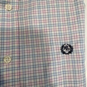 Excellent condition. Boys button down check shirt. Black label, Blue, pink & white, monogram logo, long sleeves. Size 16. See photos for measurements