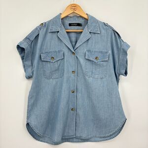 Lauren Ralph Lauren Black Label Chambray Short-Sleeve Shirt, Large, Utilitarian