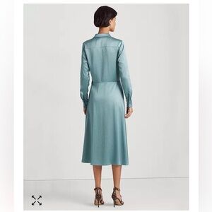 Cut from glossy, luxurious satin charmeuse, Lauren Ralph Lauren's stylish dress is defined by a flirty slit at the left skirt, an elegant surplice neckline, and a self-tie accent at the left waist. As versatile as it is beautiful, this style can be easily dressed up with glamorous heels or down with sporty sneakers.