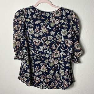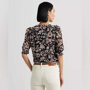Lauren Ralph Lauren Black Label Crinkle Georgette Puff-Sleeve Top size Large