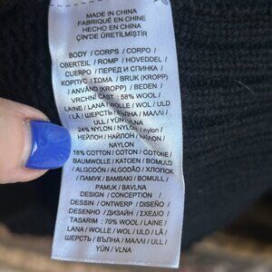 Pre-owned condition with minor visible wear (loose yarn on the shoulder as shown) but lots of life left.