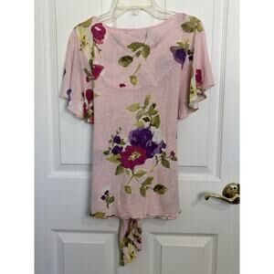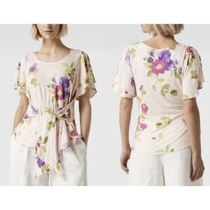 Lauren Ralph Lauren Black Label Linen Blend Pink Floral Flutter Sleeve Sz Small
