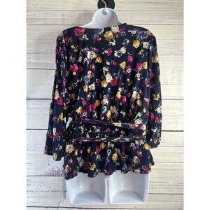 Lauren Ralph Lauren Black Label Peplum Frill Blouse Sz L Blue Floral