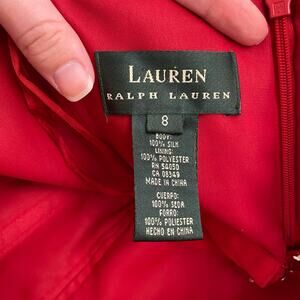 Lauren Ralph Lauren Black Label Red Silk Strapless Long Maxi Formal Dress Size 8, lined, zip closure