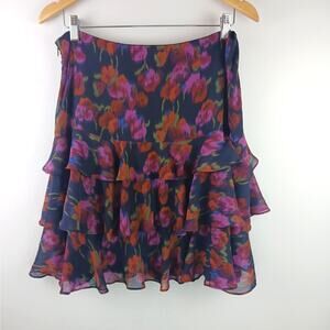 Lauren Ralph Lauren Black Label SZ 10 100% Silk Floral Tiered Ruffle Mini Skirt