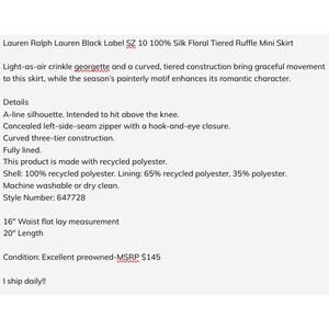 #LaurenRalphLauren #RalphLaurenBlackLabel #DesignerSkirt #FloralSkirt #TieredSkirt #GeorgetteSkirt #MiniSkirtStyle #LuxuryFashion #RalphLaurenStyle #RomanticStyle #EffortlessChic #WardrobeGoals #RalphLaurenOutfit #FeminineStyle #PoshmarkStyle