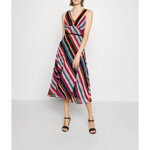Lauren Ralph Lauren Black Label Striped Crinkle Georgette Dress Size 4 NWT.