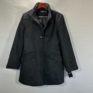 Lauren Ralph Lauren Black Label Wool Peacoat Womens 8 Black Tab Front Button NEW