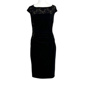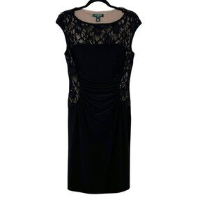 Lauren Ralph Lauren Black Lace Sequin Ruched Evening Cocktail Jersey Dress (8)