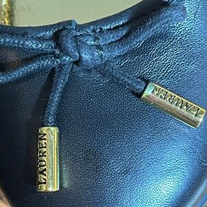 Lauren Ralph Lauren Black Leather Ballet Flats With Gold Toggles & Bow