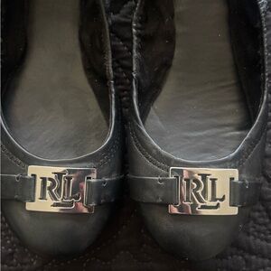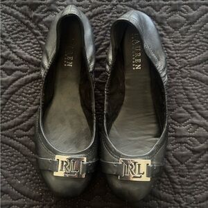 Sleek black leather loafers with signature logo detail. Ideal for versatile wear.