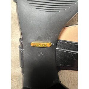 Lauren Ralph Lauren Black Leather Strappy Block Heel Sandals With Silver Buckle