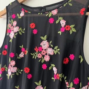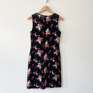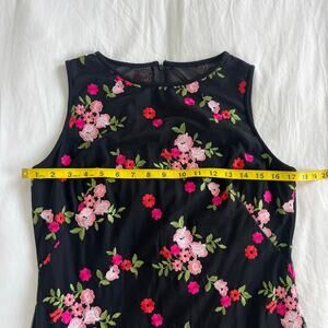 Lauren Ralph Lauren Black Mesh Embroidered Floral Sleeveless Cocktail Dress, Size 8