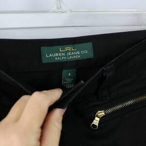 Lauren Ralph Lauren Black Moto Straight Leg Mid Rise Denim Jeans Sz 4 Zip Pocket