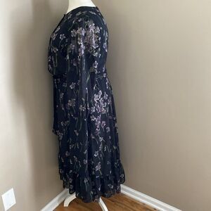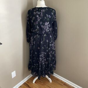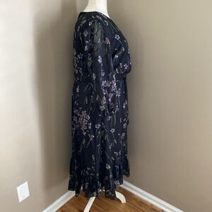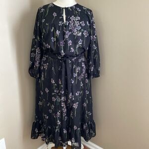 Lauren Ralph Lauren Black Multi Floral Long Sleeve Lined Midi Dress Plus size 18