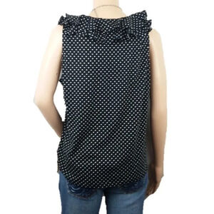 Lauren Ralph Lauren Petite Black White Polka Dot Ruffle Collar Sleeveless Top Blouse Petite Large PL