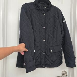 Lauren Ralph Lauren Black Quilted Jacket Size M Snap Button Equestrian Timeless