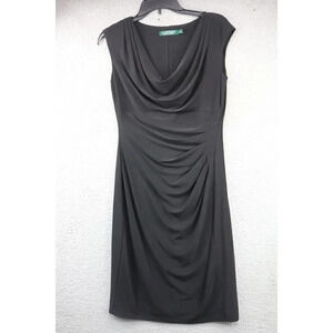 This is a beautiful black Lauren Ralph Lauren Ruched Dress that is a size 6. It is 95% Polyester and 5% Elastane. Laying flat, it measures: Armpit to armpit-17" and the length is 40". It is in great condition.