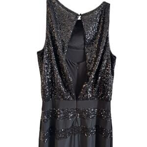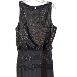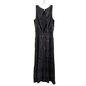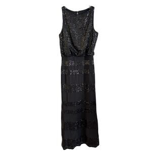 Lauren Ralph Lauren Black Sequin Blouson Sleeveless Jersey Maxi Dress Gown 8